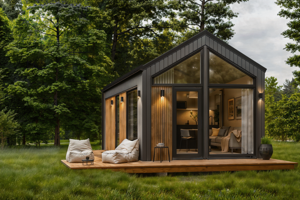 Det som gör HÜTI speciellt är dess flexibilitet – vid behov kan grundmodulen kompletteras med en vinterträdgård, bastumodul eller en modul med extra sovrum. På så sätt växer HÜTI tillsammans med dina behov och erbjuder en långsiktigt värdefull lösning.