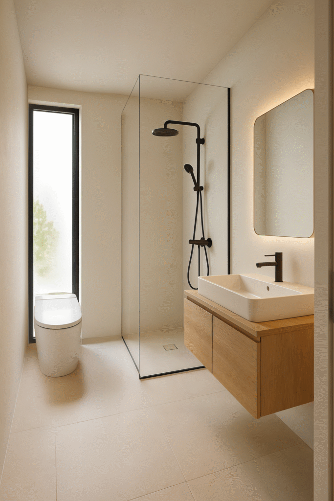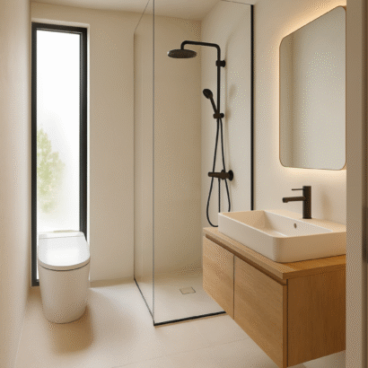 Det kompakta badrummet uppfyller alla moderna bekvämlighetskrav, medan det generösa loftet (15,8 m²) ger extra utrymme – antingen som sovplats eller förvaring.