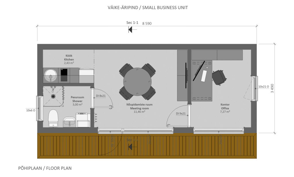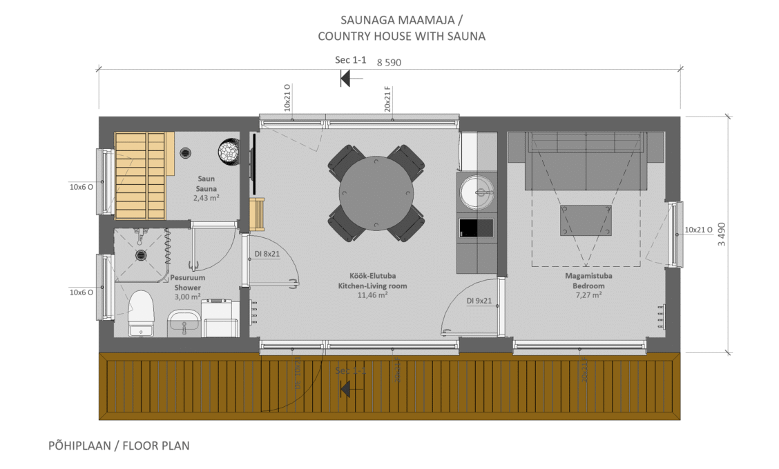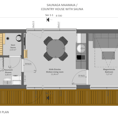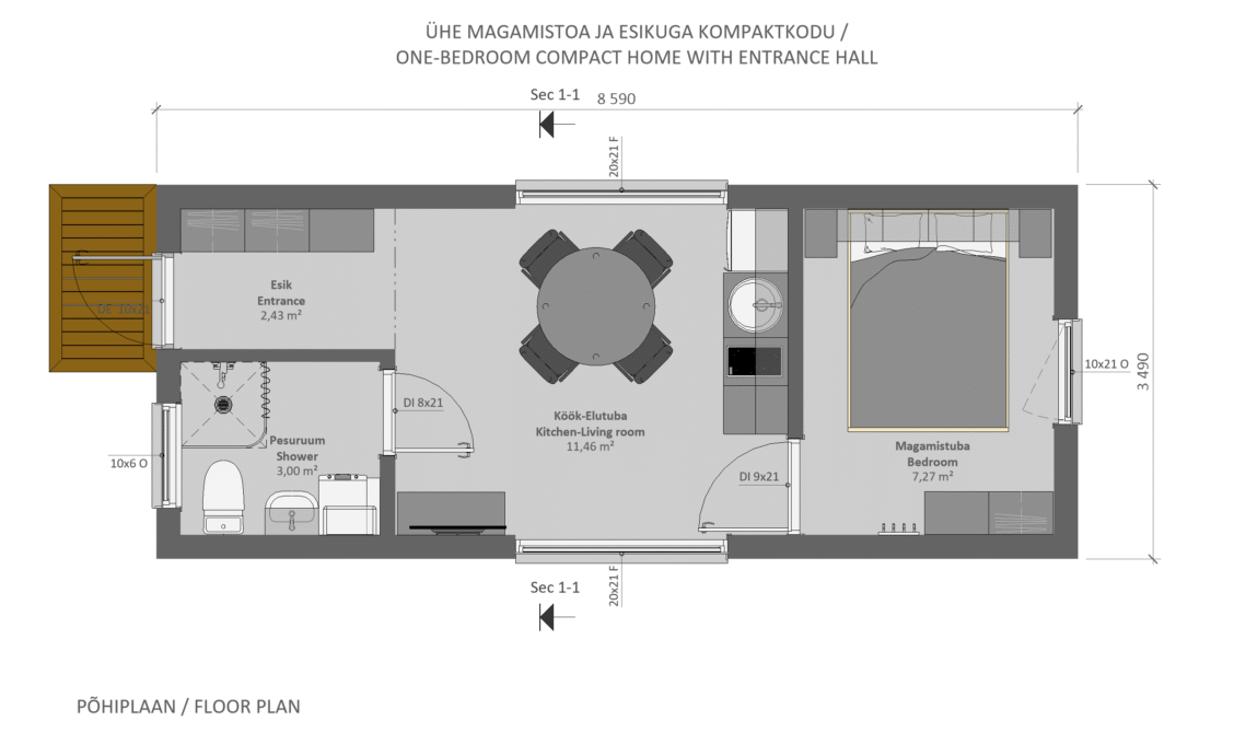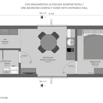 REIGI är ett kompakt modulhus med sadeltak, tillgängligt i flera olika funktionella konfigurationer. Detta ger dig möjlighet att välja den lösning som bäst motsvarar dina behov: